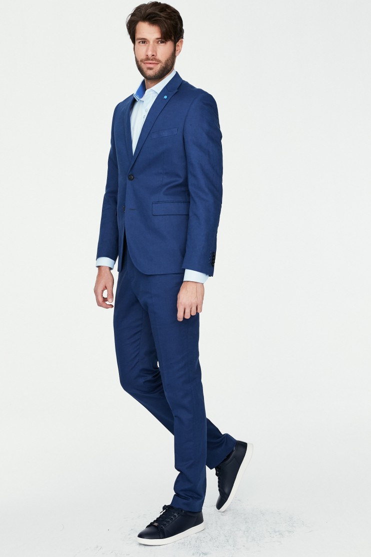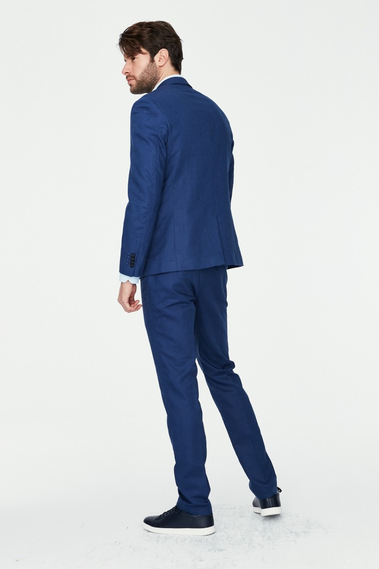 Americana confeccionada en tejido linoso de poliéster/ viscosa de gran calidad. Corte casual, con bolsillo plaston y bolsillo a la altura del pecho. Solapa de muesca con ojal . Cierre mediante dos botones. Manga larga rematada con cuatro botones.. Dos aberturas en la parte posterior, forro de fantasía y varios bolsillos interiores. Pecherín interior que se quita mediante cremallera