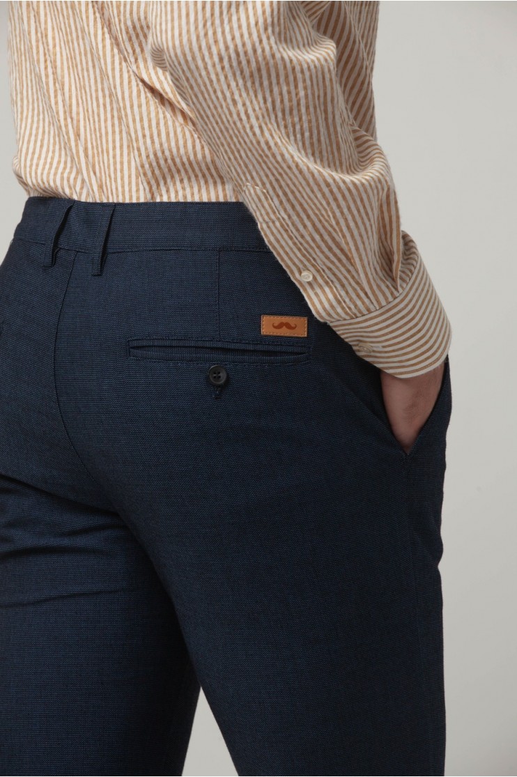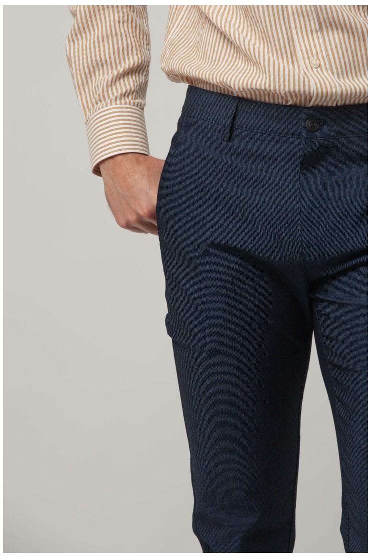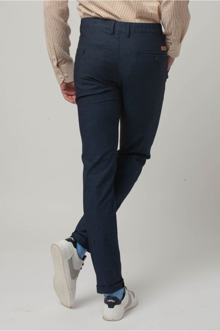 Pantalón de corte Regular Fit. Cuenta con cuatro bolsillos, dos laterales y dos con botón en la parte posterior. Cierre del pantalón con cremallera y botón. Cuenta con trabillas para el cinturón y forro interior.