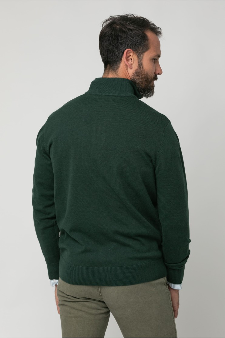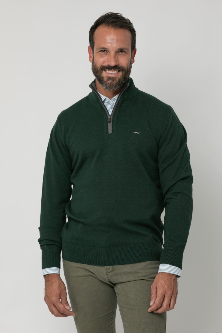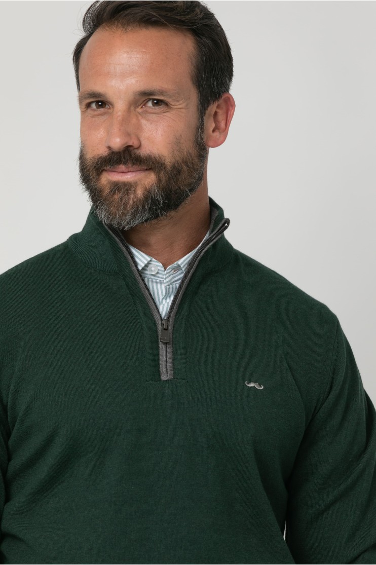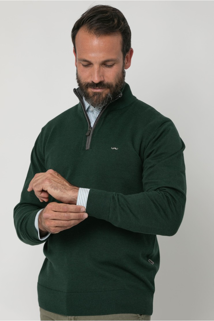 Jersey media cremallera con vivo en contrate Corte recto y acabados acanalados. Bordado de la marca en el pecho en contraste.