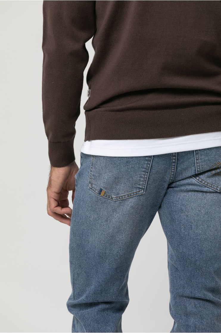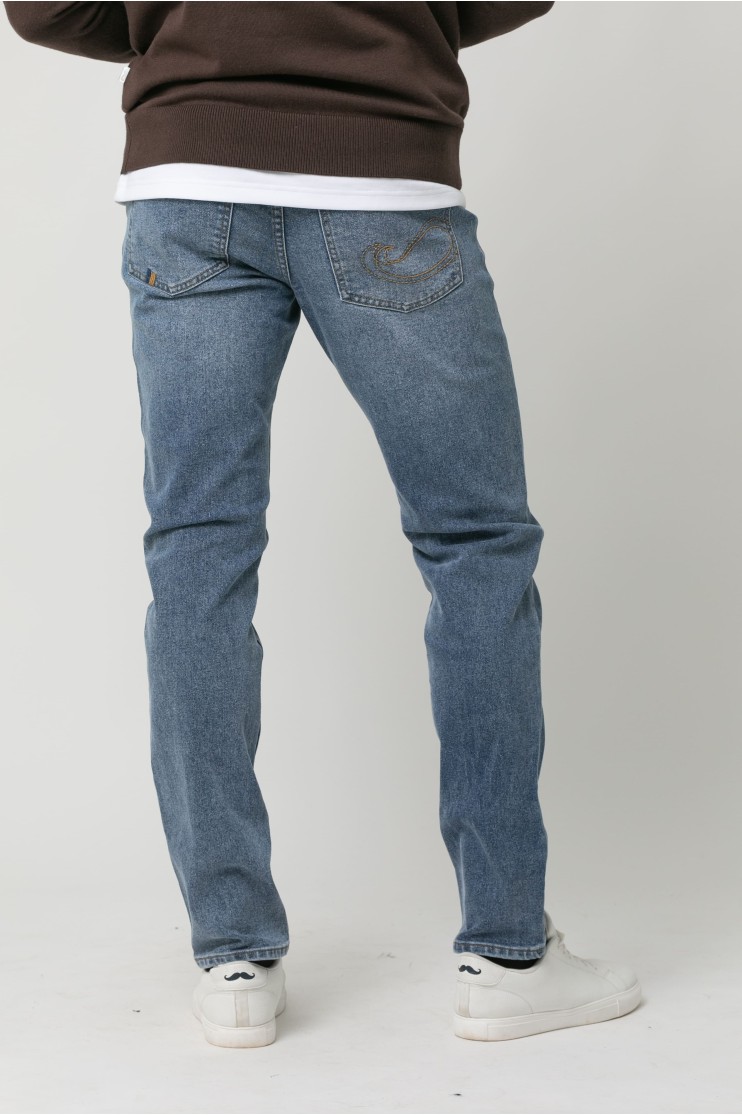 Pantalón tejano Stone wash. Confeccionado en tejido de algodón confort. Corte Slim fit. Cierre mediante cremallera oculta por tapeta y botón contrastado, diseño de cinco bolsillos y trabillas para el cinturón.