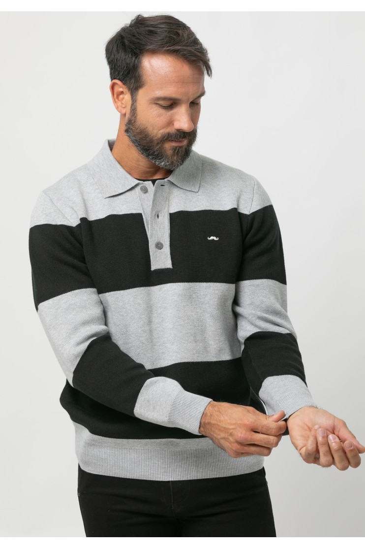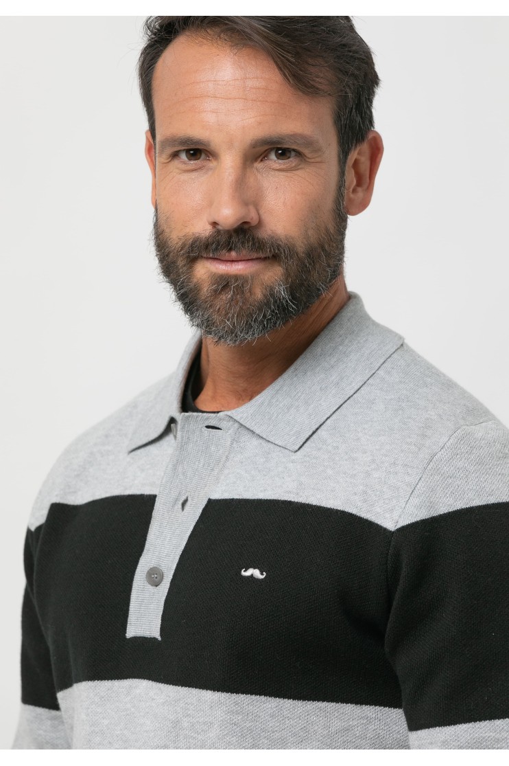 Polo de punto, diseño de rayas. Bicolor. Corte recto, cuello polo con botones y acabados acanalados. Bordado de la marca en el pecho al tono.