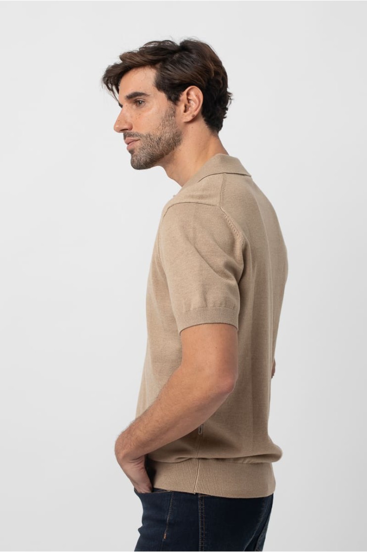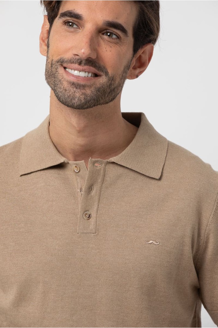 Jersey polo liso, confeccionado en tejido mezcla acrílico, algodón y polo. Corte recto, cuello polo con cierre de tapeta con 2 botones y manga corta. Acabados acanalados. Logo de la marca en el pecho.