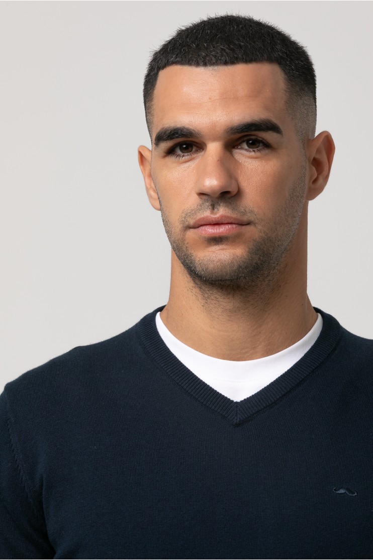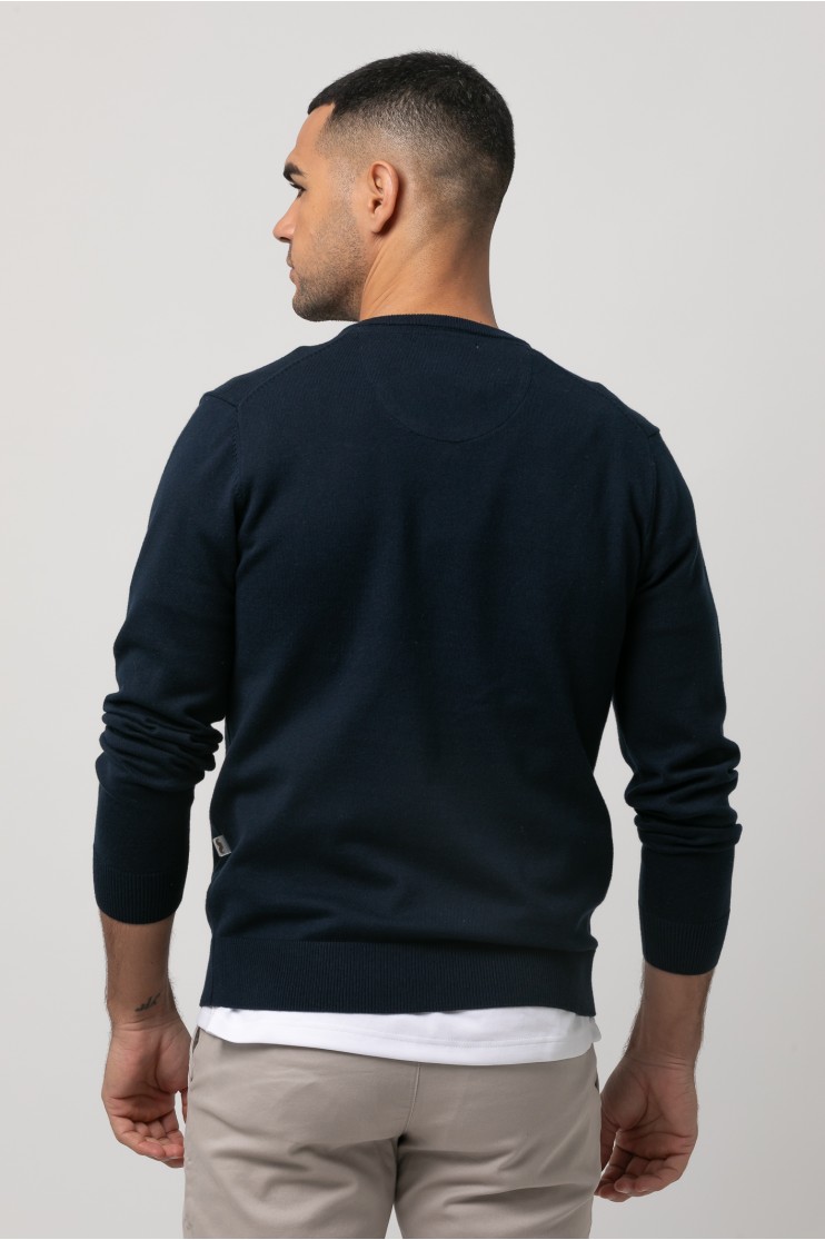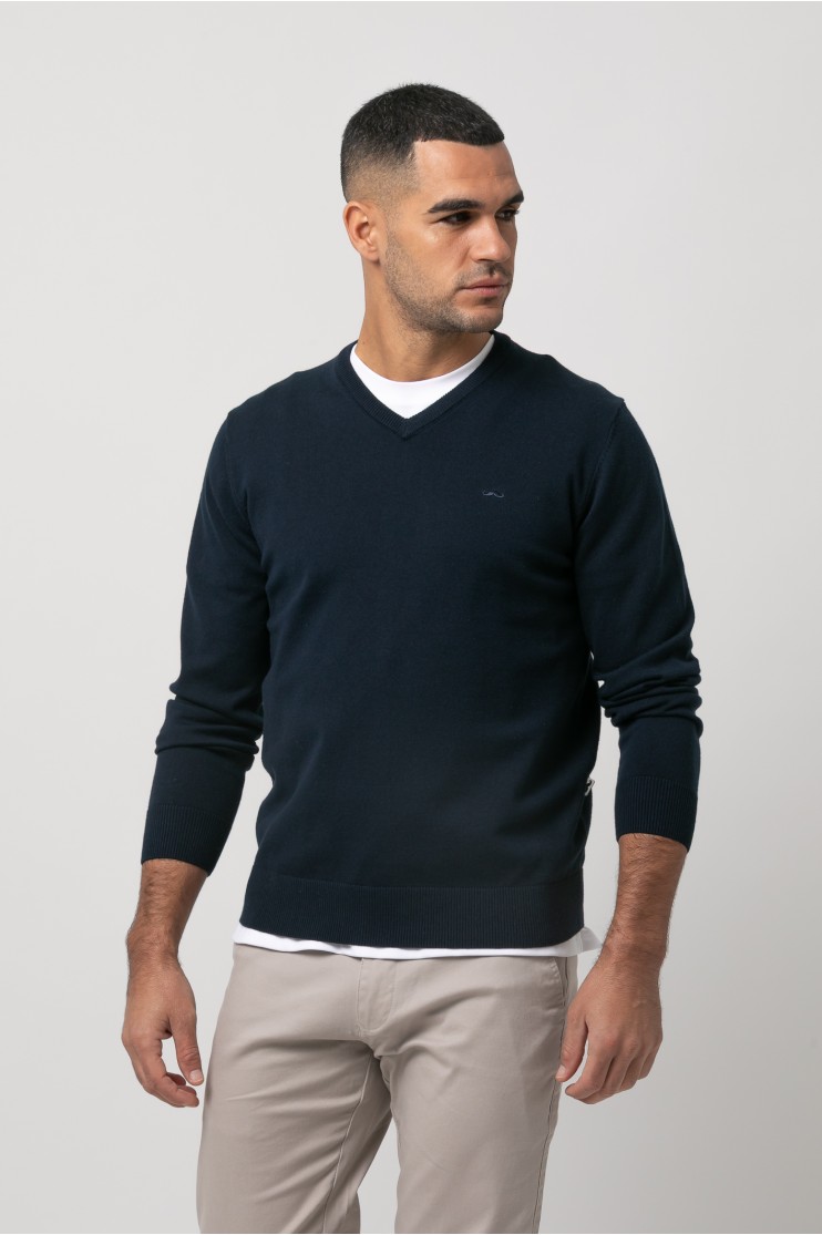 Jersey de corte recto con cuello pico corto y manga larga. Acabados en rib. Logo de la marca situado en el pecho al tono.