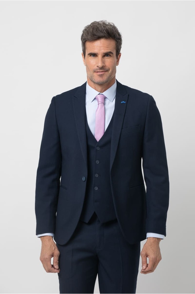 Americana confeccionado en tejido falso liso Corte regular fit sin que sea muy entallado ensalza la figura masculina, con bolsillos de vivo y bolsillo a la altura del pecho, Solapa de muesca, ojal y pin de la marca en contraste. Cierre con dos botones. Manga larga rematada con cuatro botones. Dos aberturas en la parte posterior, forro y varios bolsillos interiores. Completa tu conjunto con el pantalón Quarteno Ref. 2510113001 y el chaleco Lats Ref. 2519924003. Con un diseño impecable y una confección que prioriza la elegancia, este traje es la elección perfecta para cualquier ocasión formal. Descubre la versatilidad de su tejido y combina cada pieza con facilidad.