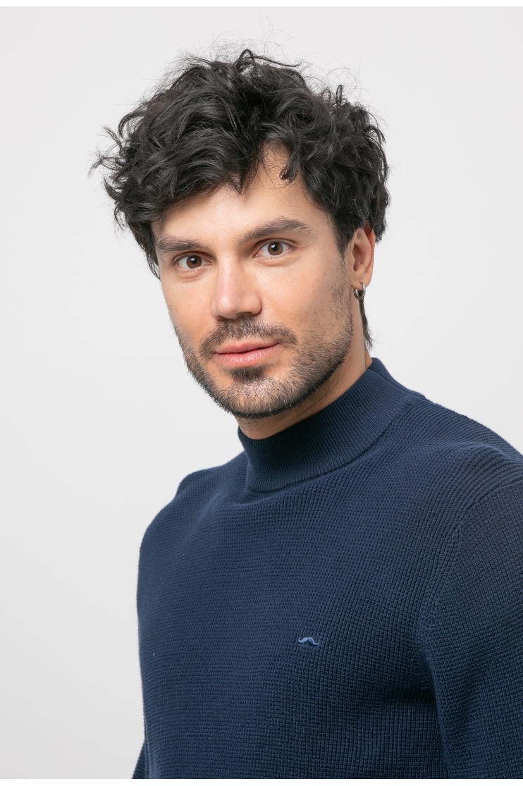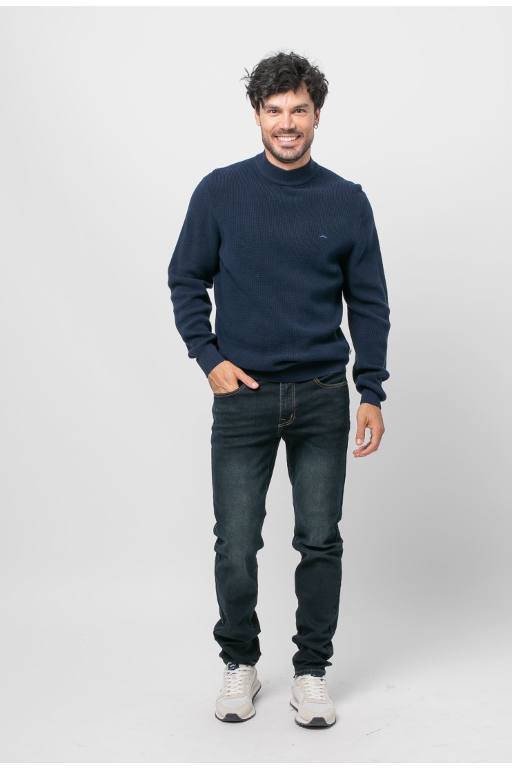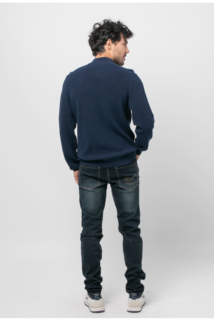 Jersey con estructura en 100% algodón, corte recto, cuello subido , manga larga y acabados acanalados.