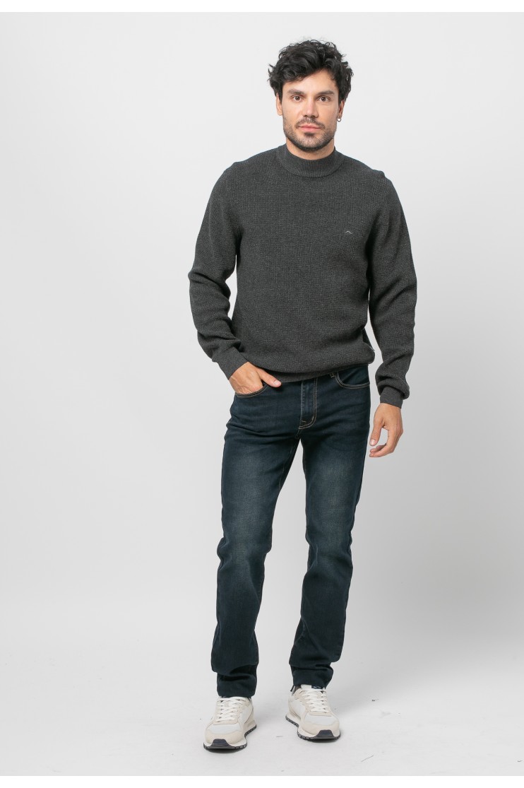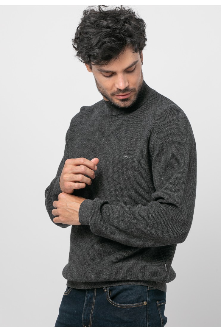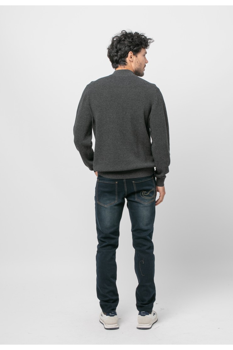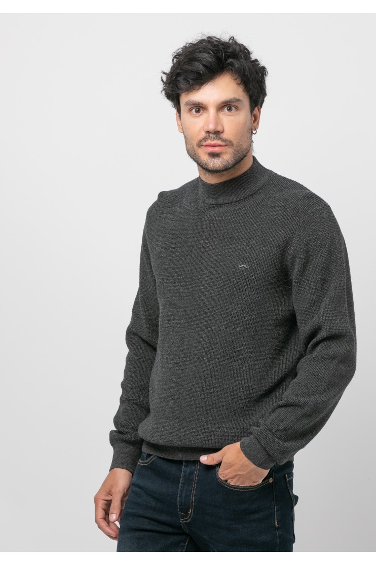 Jersey con estructura en 100% algodón, corte recto, cuello subido, manga larga y acabados acanalados.