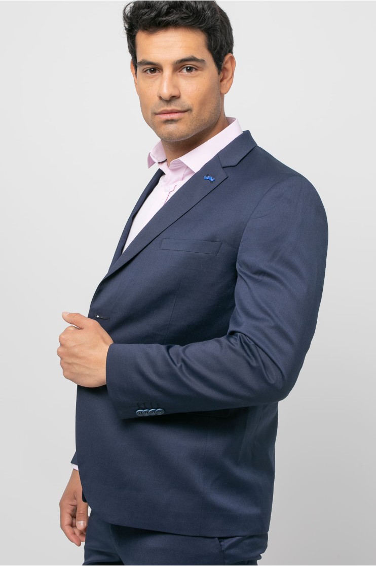 Americana de poliéster y viscosa y spandex de alta calidad y comodidad. La americana tiene bolsillos de solapa, uno en el pecho con detalle, solapa de muesca, cierre de dos botones, manga larga con cuatro botones, una abertura trasera, forro de fantasía y bolsillos interiores.
