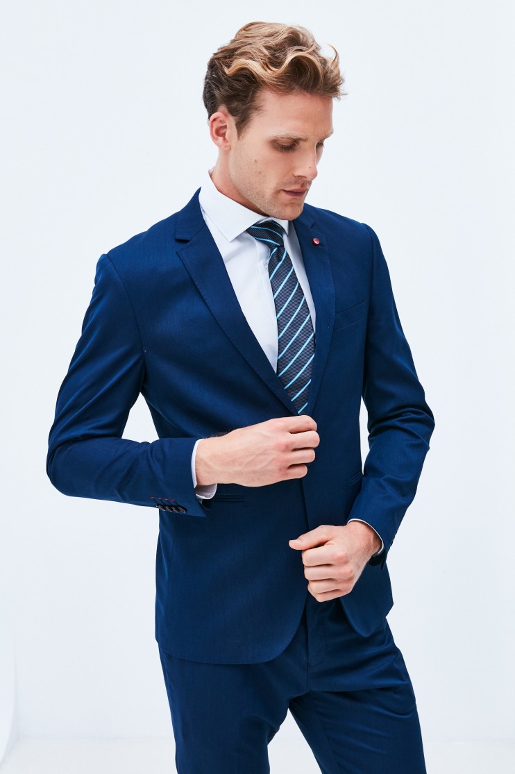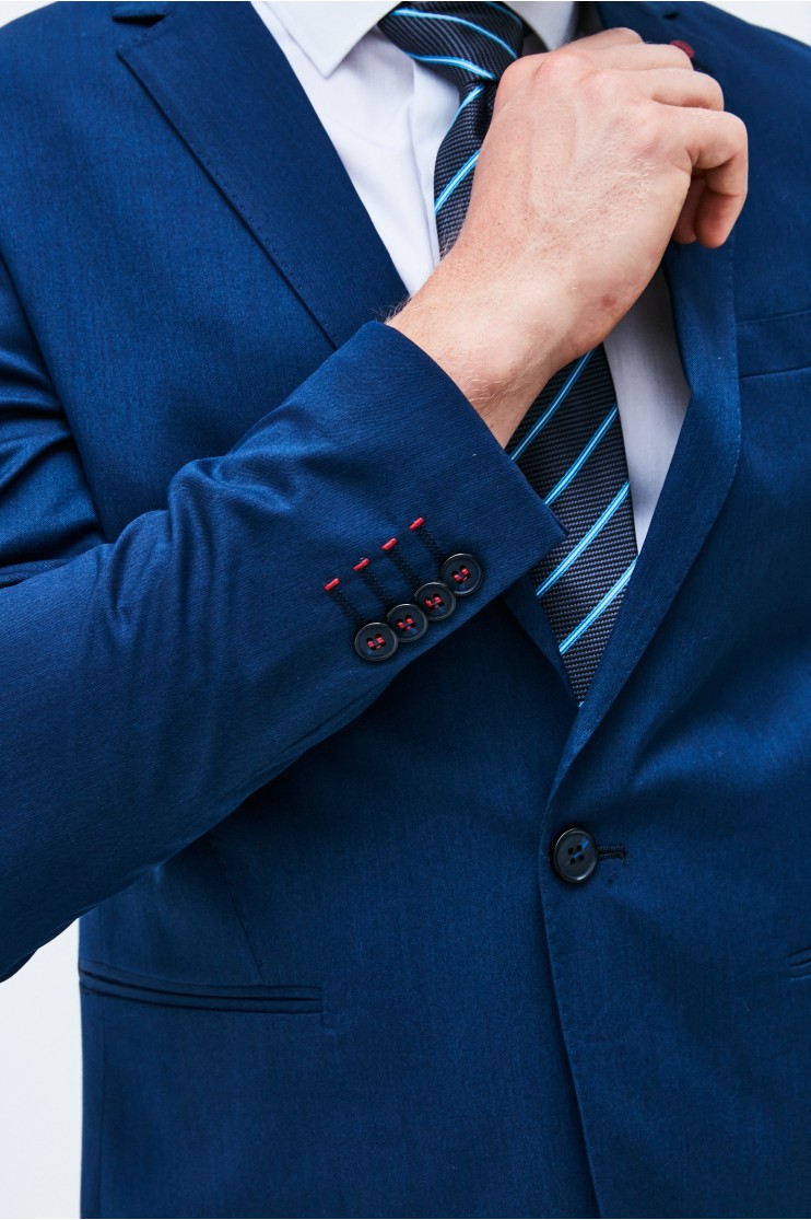 americana confeccionada en tejido de gran calidad y conford. Corte casual, con bolsillo de vivo con cortes en el delantero y bolsillo a la altura del pecho.Solapa de muesca con ojal y pin de la marca