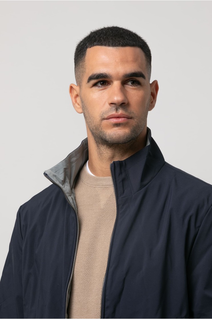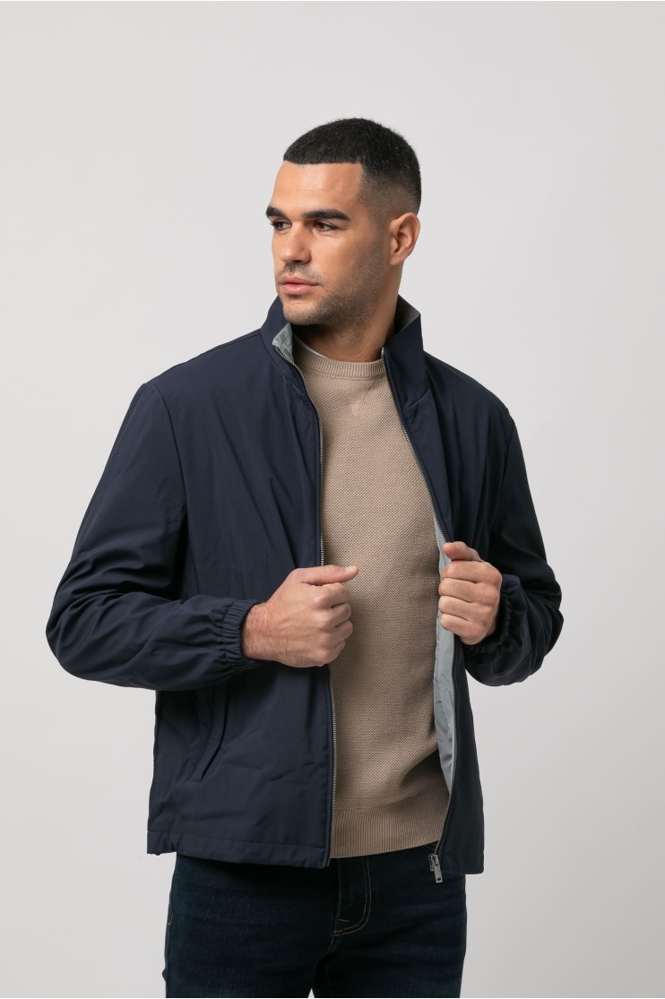 Cazadora con tejido técnico, detalles interiores contrastados y dos bolsillos frontales con cremallera. Cierre con cremallera. Manga con elástico.