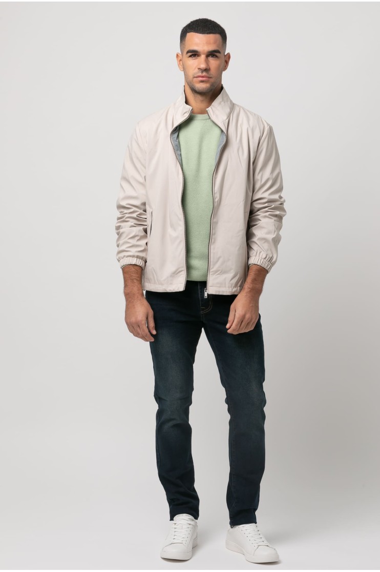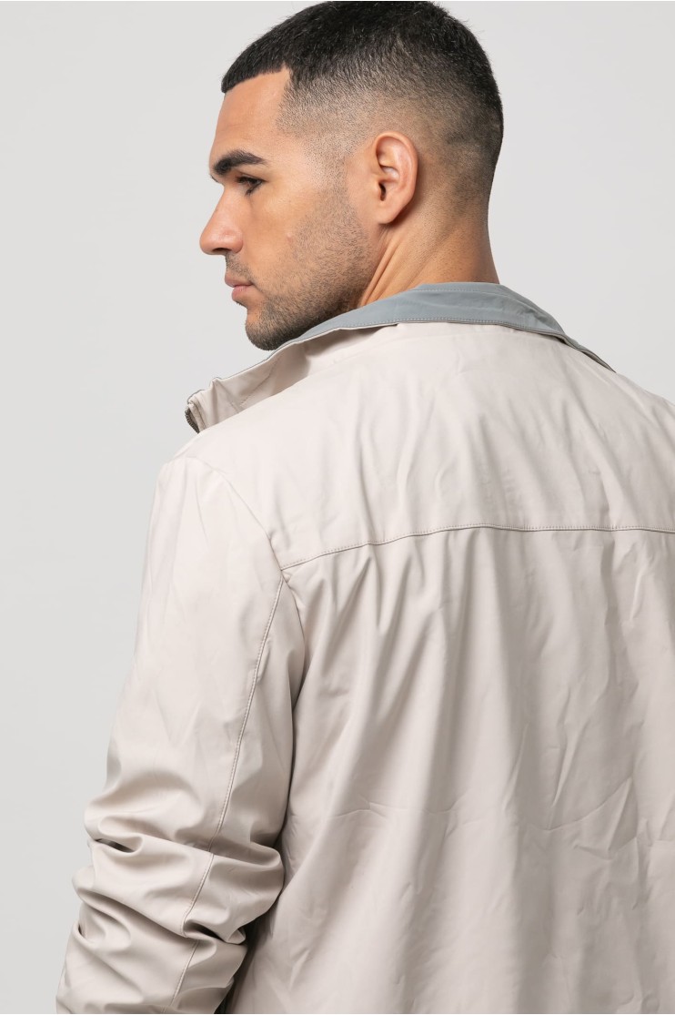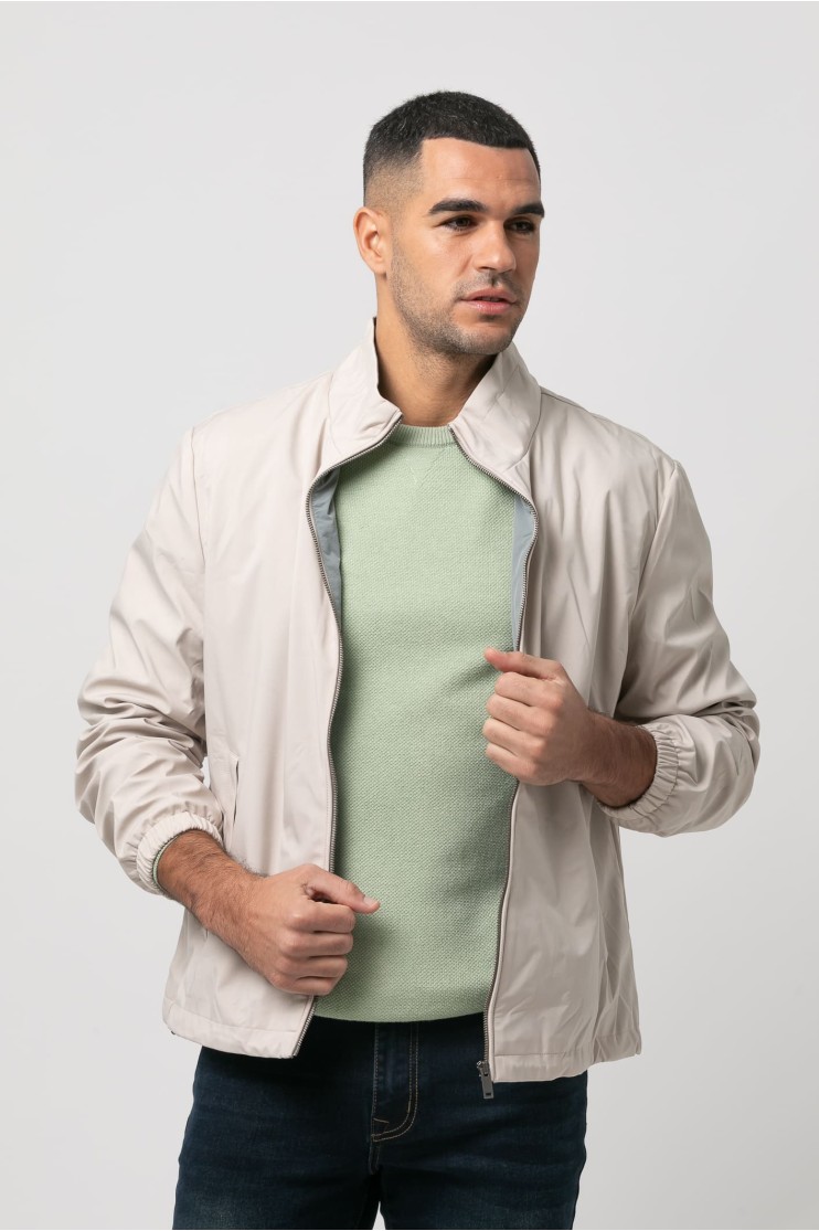 Cazadora con tejido técnico, detalles interiores contrastados y dos bolsillos frontales con cremallera. Cierre con cremallera. Manga con elástico.