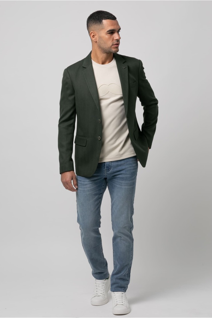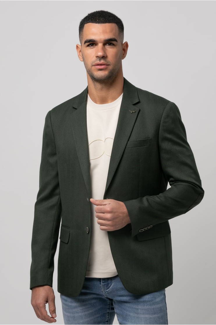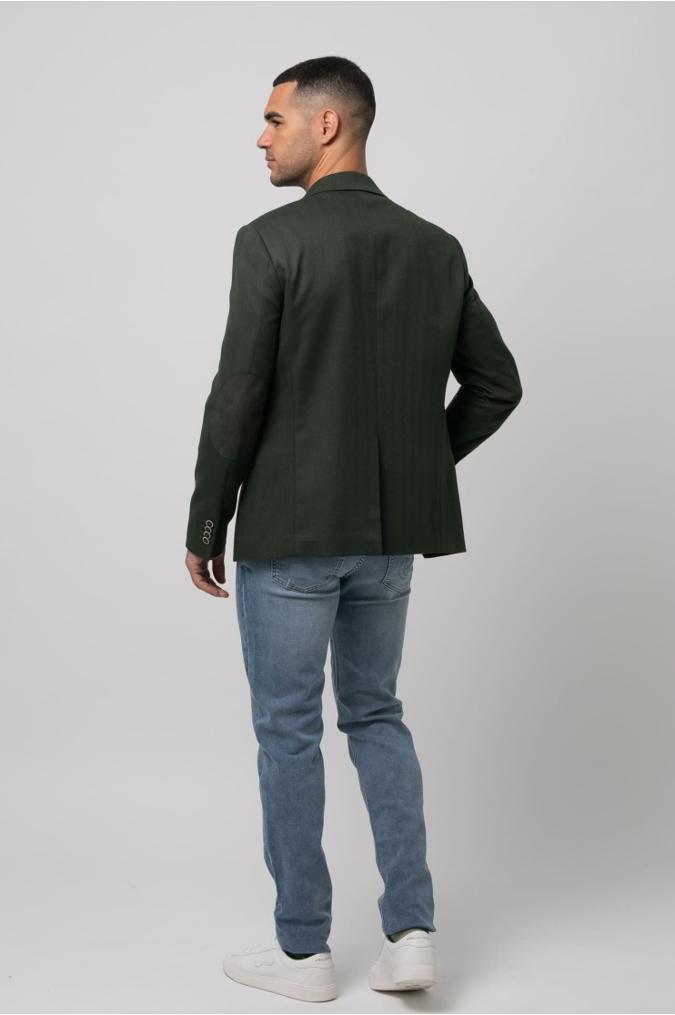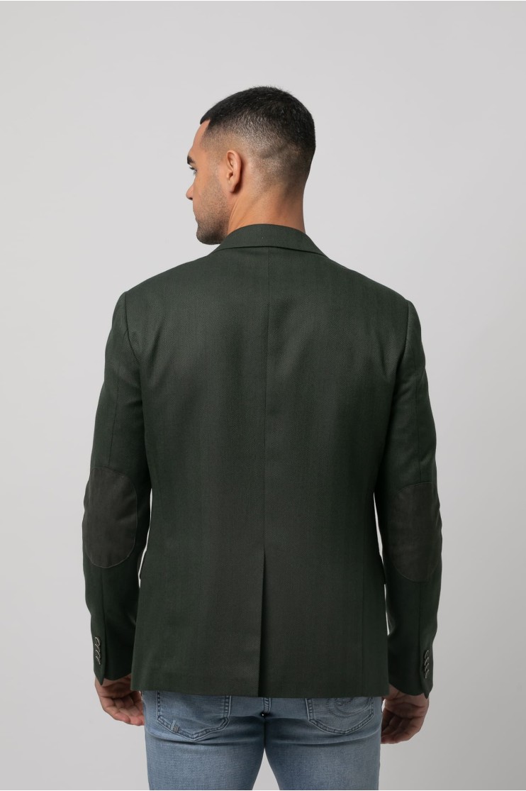 Americana sport, tejido de espiga de gran calidad y confort. Corte regular con bolsillos laterales de tapeta, bolsillo a la altura del pecho con detalle. Solapa estándar con muesca y ojal. Cierre con dos botones, manga larga con coderas rematada con cuatro botones. Una abertura central en la parte posterior, forro y varios bolsillos interiores.