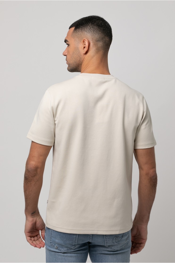 Camiseta lisa de algodón confort, corte casual, cuello redondo y manga corta y detalle de logo bordado en el pecho.