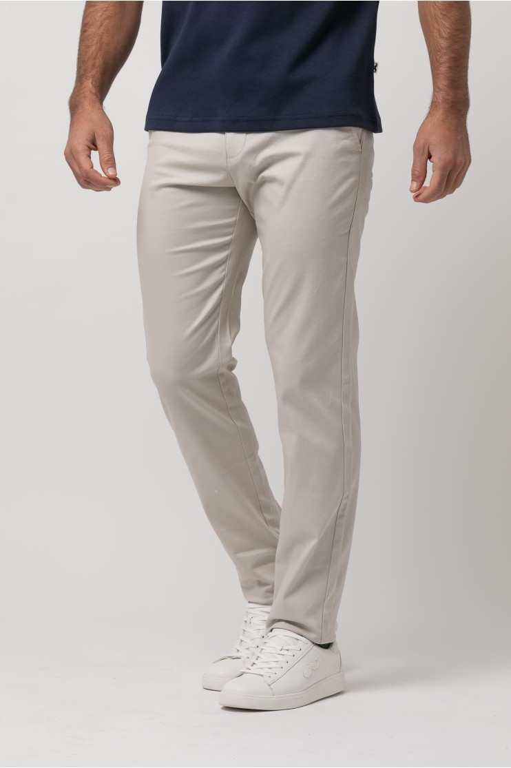 Pantalón Slim fit con algodón, tejido estructura, cierre de cremallera oculta y botón. Dos bolsillos laterales, dos traseros abotonados, trabillas para cinturón y forro interior.