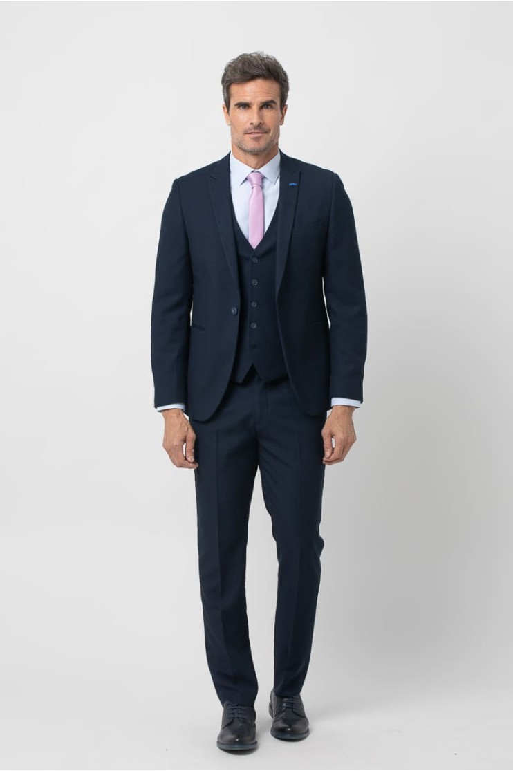 Pantalón de vestir tejido falso liso con dos bolsillos laterales y otros dos bolsillos de vivo con botón en la parte posterior. Cinturilla con ensancha que hace ganar media tallas, Cierre del pantalón con cremallera oculta por solapa y botón. Trabilla para cinturón y forro interior. Ancho de tobillo de 19 cm. Pantalón de vestir tejido falso liso con dos bolsillos laterales y otros dos bolsillos de vivo con botón en la parte posterior. Cinturilla con ensancha que hace ganar 1/2 talla, Cierre del pantalón con cremallera oculta por solapa y botón. Trabilla para cinturón y forro interior. Ancho de tobillo de 19 cm. Completa el traje con la americana España Ref. 2511406001 y el chaleco España Ref. 2619924002. Con un diseño impecable y una confección que prioriza la elegancia, este traje es la elección perfecta para cualquier ocasión formal. Descubre la versatilidad de su tejido y combina cada pieza con facilidad.