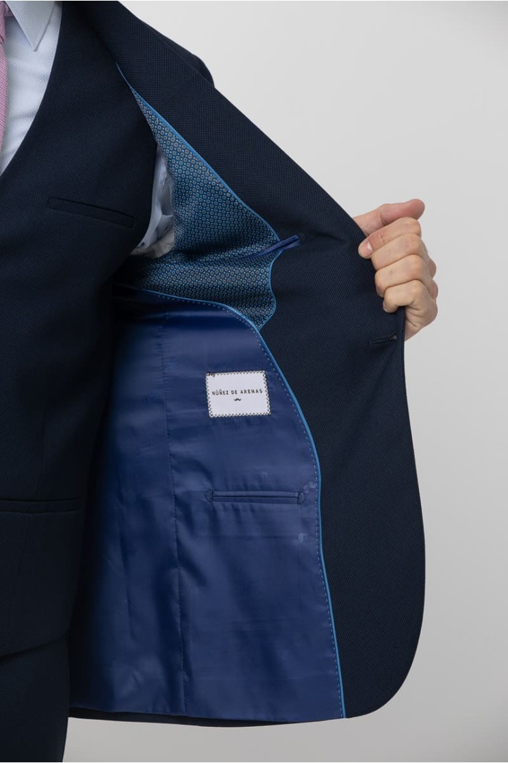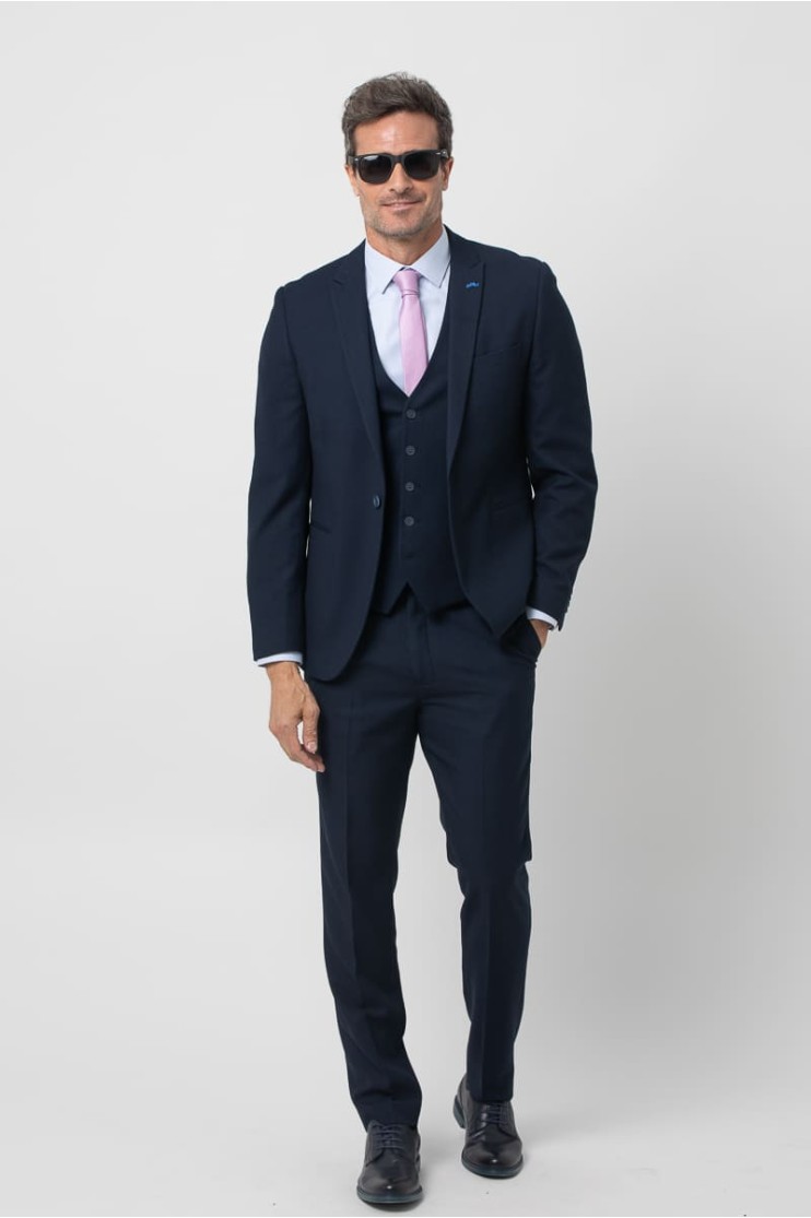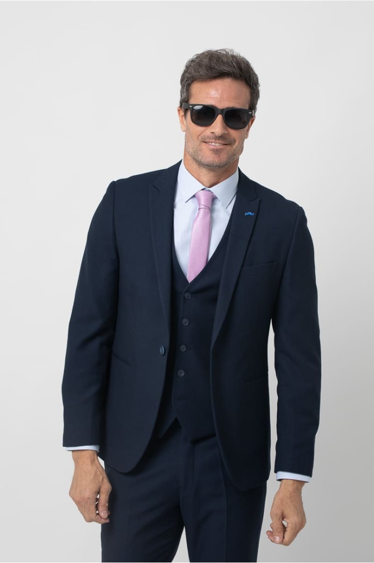 Americana confeccionado en tejido falso liso. Corte regular fit sin que sea muy entallado pero ensalzando la figura masculina, con bolsillos de vivo y bolsillo a la altura del pecho, Solapa de pico, ojal y pin de la marca en contraste. Cierre con dos botones. Manga larga rematada con cuatro botones. Dos aberturas en la parte posterior, forro y varios bolsillos interiores. Combínala con el pantalón España Ref. 2510113001 y el chaleco España Ref. 2619924002 para completar el traje. Con un diseño impecable y una confección que prioriza la elegancia, este traje es la elección perfecta para cualquier ocasión formal. Descubre la versatilidad de su tejido y combina cada pieza con facilidad.