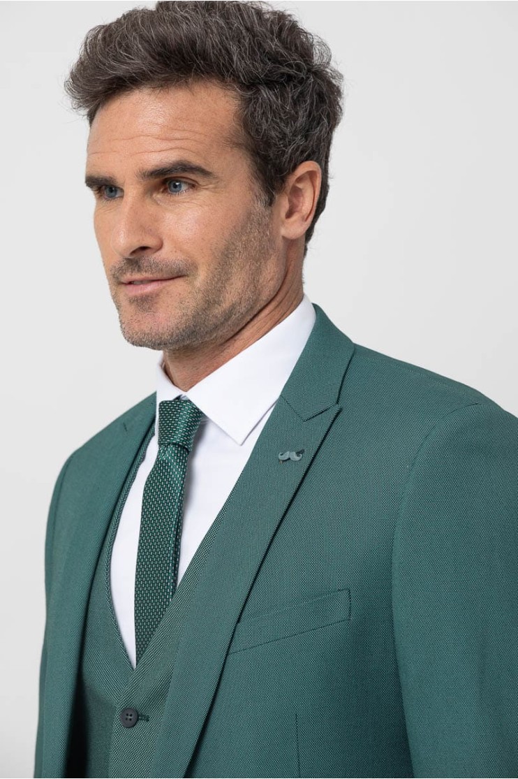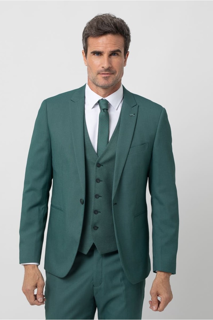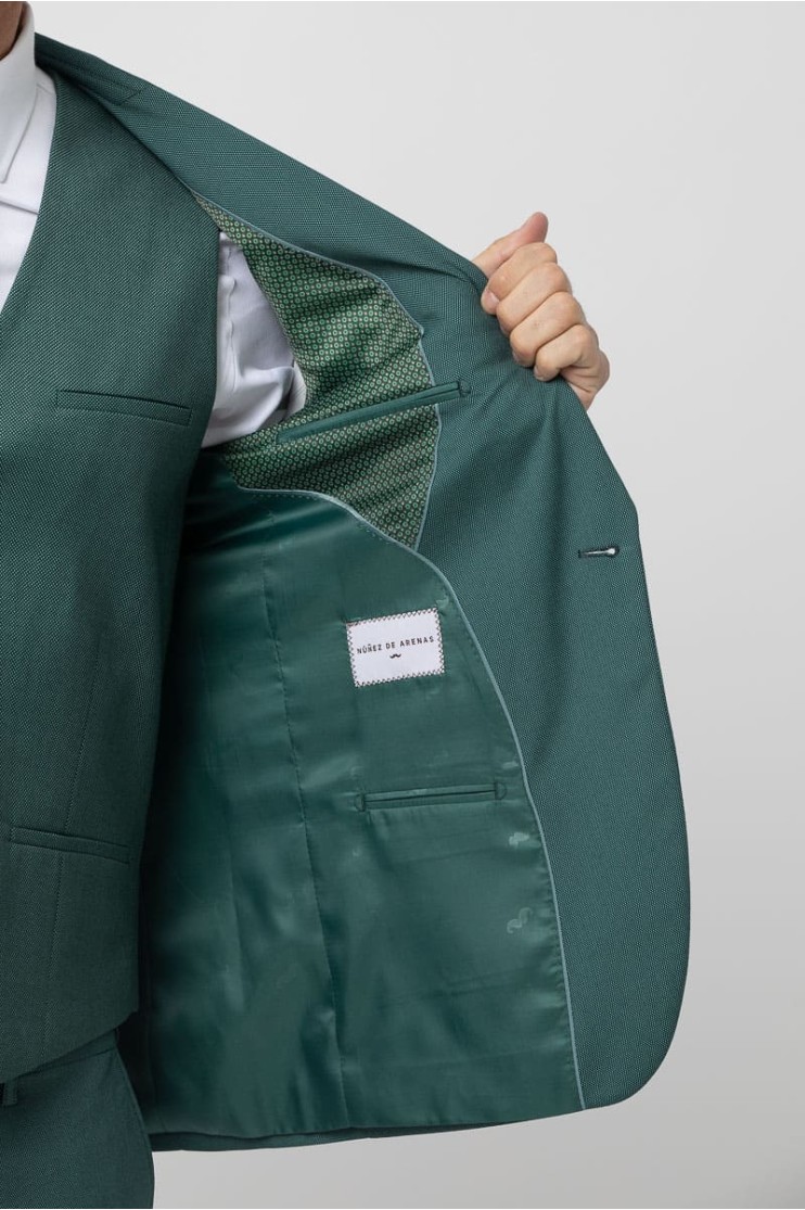 Americana confeccionado en tejido falso liso. Corte regular fit sin que sea muy entallado pero ensalzando la figura masculina, con bolsillos de vivo y bolsillo a la altura del pecho, Solapa de pico, ojal y pin de la marca en contraste. Cierre con dos botones. Manga larga rematada con cuatro botones. Dos aberturas en la parte posterior, forro y varios bolsillos interiores. Combínala con el pantalón España Ref. 2510113001 y el chaleco España Ref. 2619924002 para completar el traje. Con un diseño impecable y una confección que prioriza la elegancia, este traje es la elección perfecta para cualquier ocasión formal. Descubre la versatilidad de su tejido y combina cada pieza con facilidad.