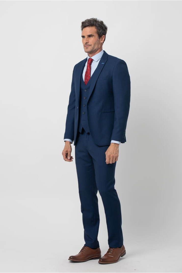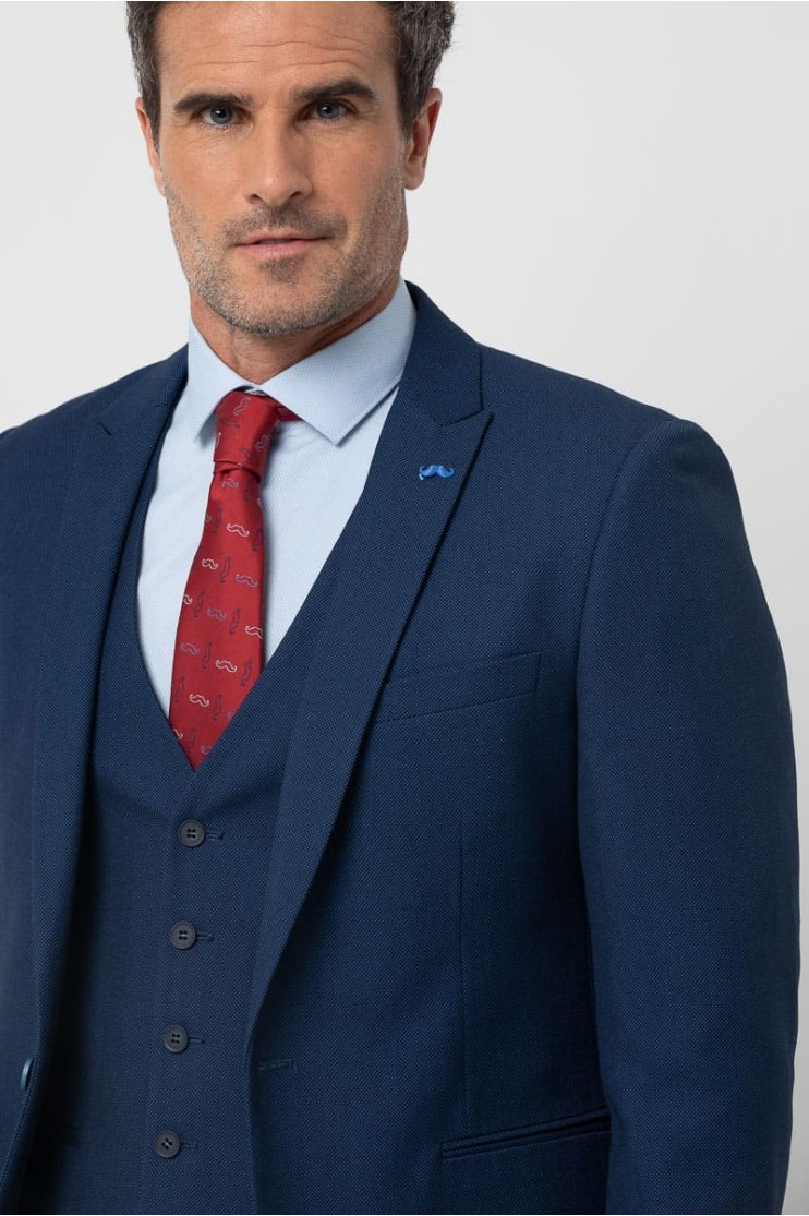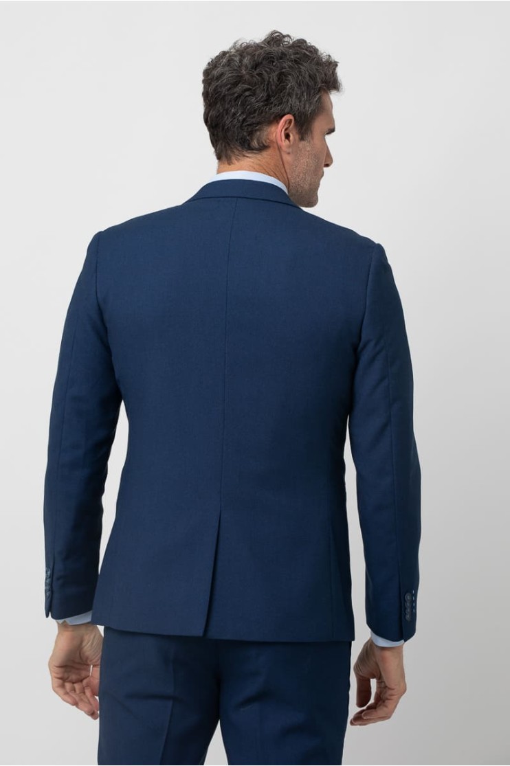 Americana confeccionado en tejido falso liso. Corte regular fit sin que sea muy entallado pero ensalzando la figura masculina, con bolsillos de vivo y bolsillo a la altura del pecho, Solapa de pico, ojal y pin de la marca en contraste. Cierre con dos botones. Manga larga rematada con cuatro botones. Dos aberturas en la parte posterior, forro y varios bolsillos interiores. Combínala con el pantalón España Ref. 2510113001 y el chaleco España Ref. 2619924002 para completar el traje. Con un diseño impecable y una confección que prioriza la elegancia, este traje es la elección perfecta para cualquier ocasión formal. Descubre la versatilidad de su tejido y combina cada pieza con facilidad.